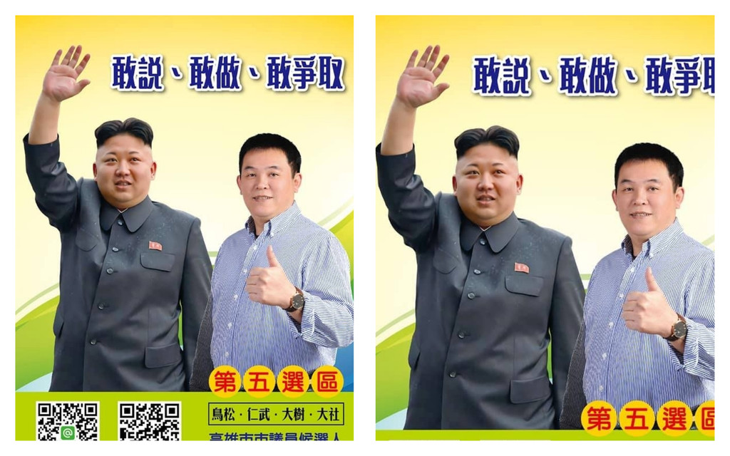 隨著投票日期越發接近,候選人無不開始出奇招,就是想要在選民心中留下深刻的印象。高市一名市議員候選人發揮創意,在競選看板放上自己和金正恩的「合照」,上面寫著「敢說、敢做、敢爭取」,讓路過民眾都留下深刻的印象。