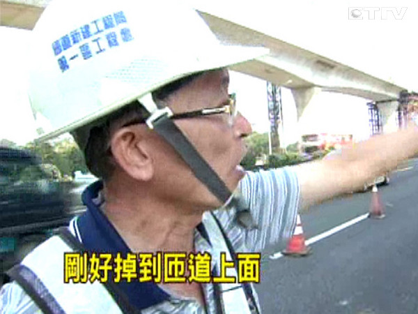 日前才有陳姓護士開車經過中山高五股交流道時,遭上方高架施工掉落的混凝土漿砸中愛車,21日內壢路段卻又發生整個鋼樑崩落事件,施工安全度備受質疑;可怕的是,斷落原因目前還不知道。