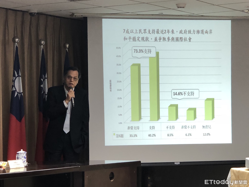 ▲陸委會主委陳明通公布兩岸政策民調。(圖/記者曾俊豪攝)