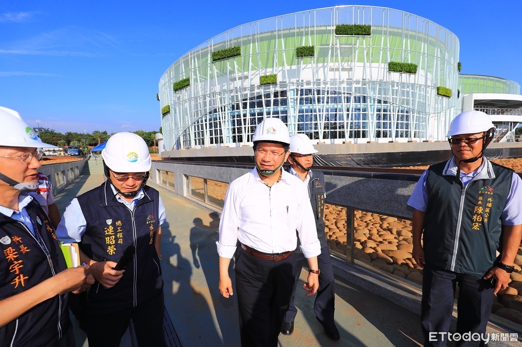 ▲台中市長林佳龍(中)視察即將完工的花博外埔園區。(圖/記者李忠憲攝)