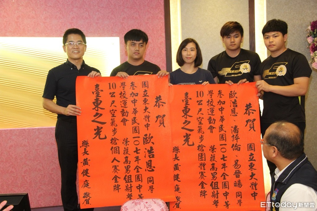 ▲台東縣代表隊參加全國中等學校運動會成績大放異采,縣府特別舉行慶功宴,縣長黃健庭親自出席及頒贈紅榜。(圖/台東縣政府提供 下同)