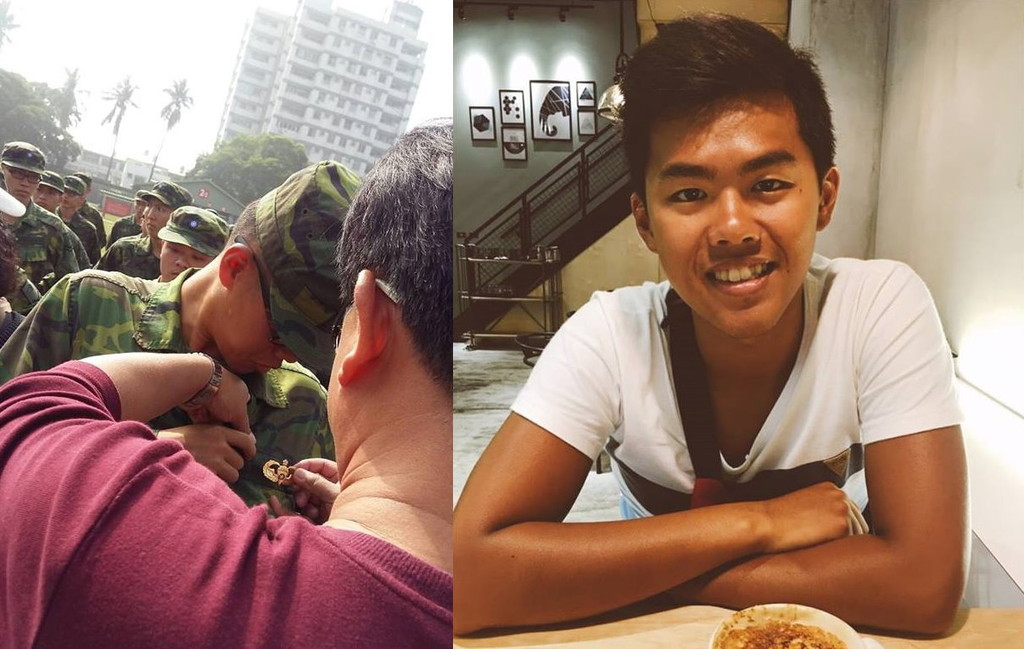 ▲▼秦良丰父親親自幫完成傘訓的兒子別上傘徽。(圖/翻攝秦良丰父親臉書)