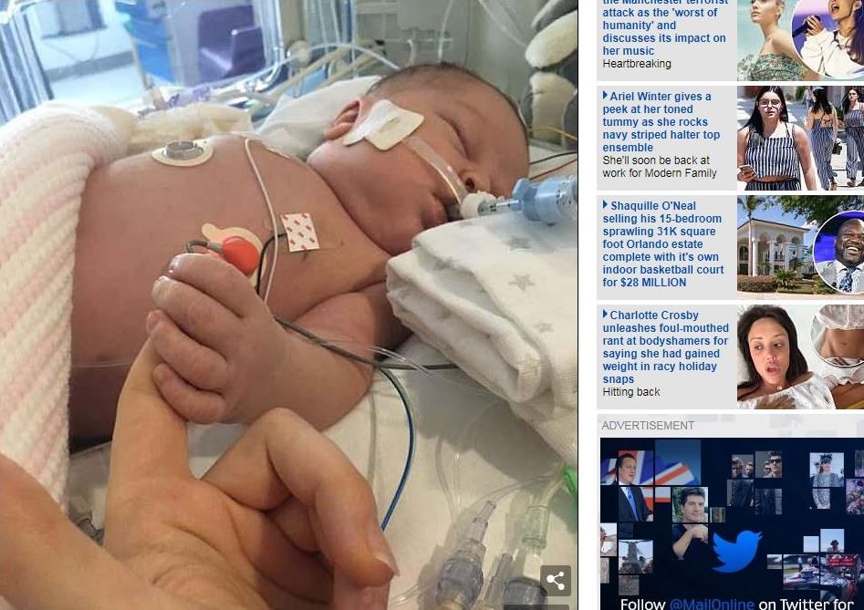 但女嬰健康狀況越來越慘,在出生第5天時,連醫生都表明沒有存活下來的機會。父母得知後不想女兒過得太痛苦,便決定拔掉生命維持器,送女兒到天堂好好休息,當一個快樂的小天使。