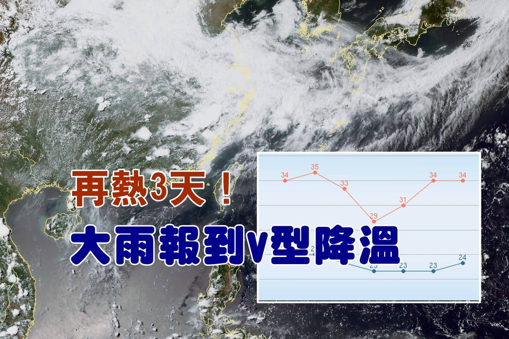 再熱3天!台北中午18日飆出37.4度高溫,創下測站今年最高紀錄,也是5月第二高溫紀錄,中央氣象局表示,20日持續高溫悶熱,各地都飆上32度,大台北更上看35度以上,這樣天氣將持續3天,一直到23日(下周三)鋒面靠近,中部以北轉有大雨,且高溫將下降5度;但這波鋒面僅快閃一天就通過。