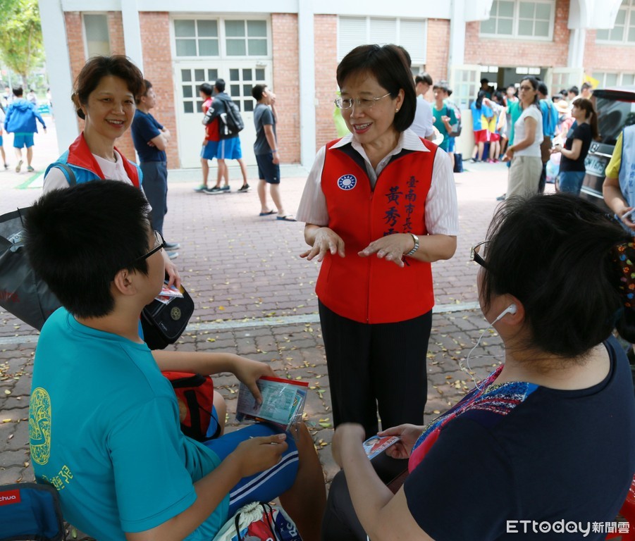 107年國中教育會考於5月19日、20日登場,台南考區有1萬7600名考生報考,全市設有17所考場共460間試場,身為教育專家、爭取國民黨台南市長提名的大台南婦女會理事長、前國立台南大學校長黃秀霜,特地前往長榮中學考場為考生加油打氣,並慰問陪考的家長。