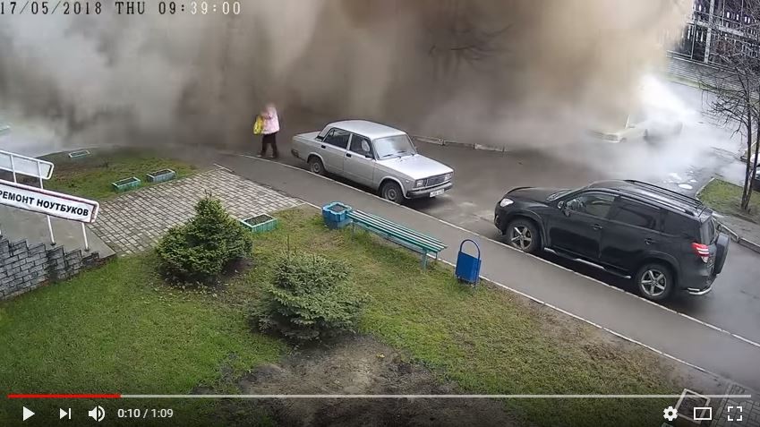 俄羅斯城鎮巴爾瑙爾(Barnaul)一處社區本月17日突然發生地下水管爆裂事件,40度熱水從地面湧出,水花及蒸汽瞬間蓋住監視器鏡頭能拍到的所有範圍。一名目擊者表示,當時有位老婦人剛好路過,結果下一秒就直接被水「淹」過去了,幸好最後她平安無事還自己走出來。