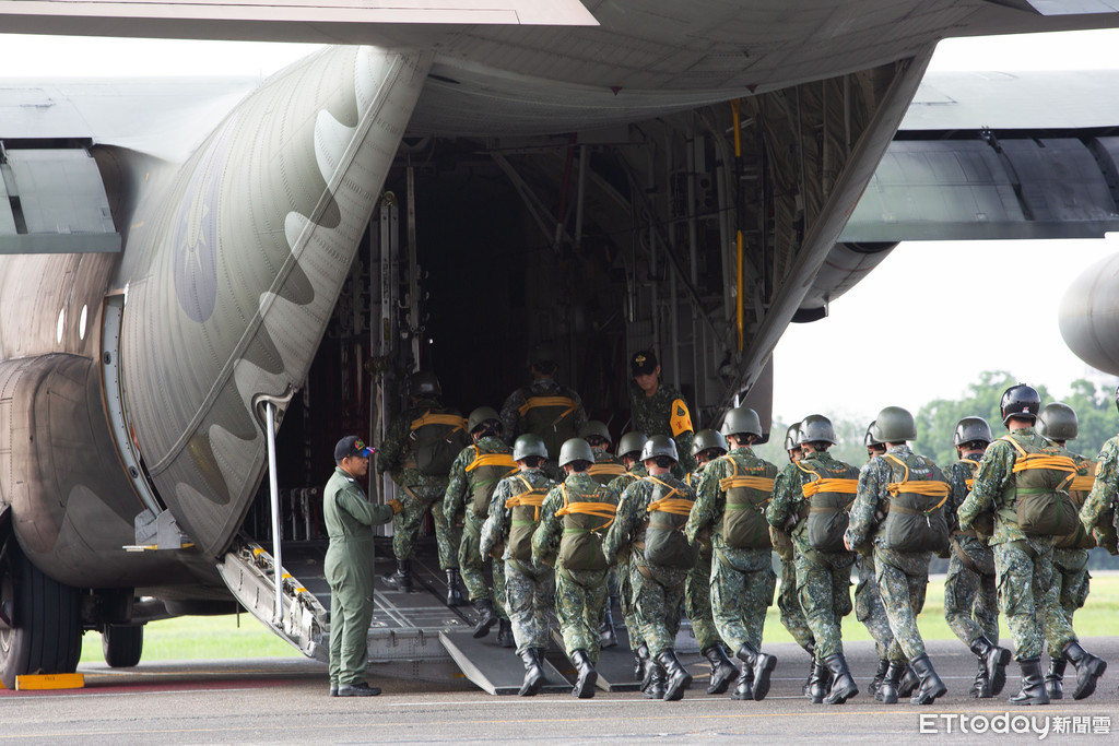 ▲傘兵著裝後登機。(圖/記者季相儒攝)