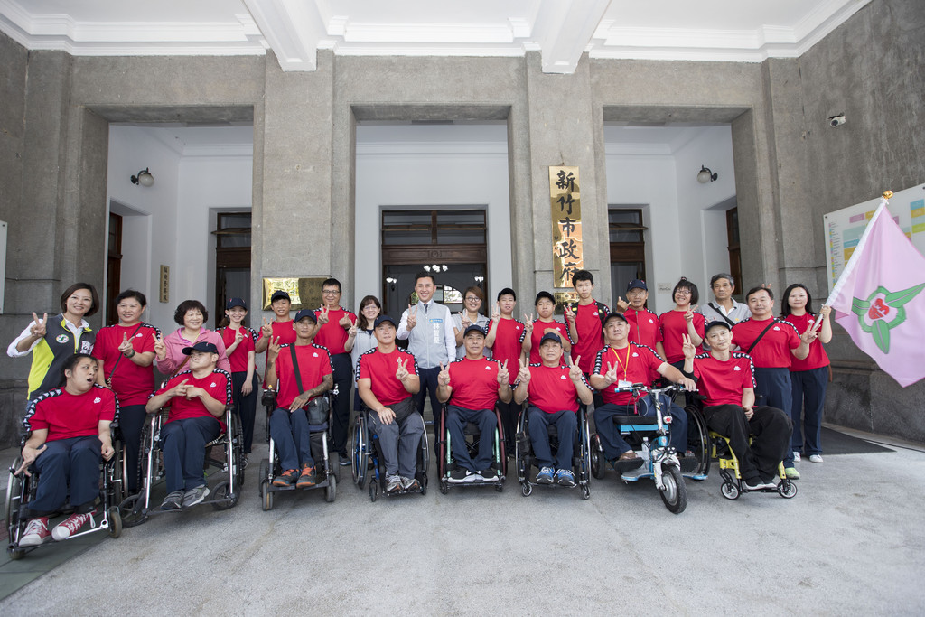 107年全國身心障礙國民運動會5月24日登場,今(22)日新竹市代表隊誓師前往嘉義市參賽,去年代表隊得到8金、1銀的好成績,其中輪椅網球金牌「新竹戴加揚」戰無不勝,在身心障礙網球界名號響亮,市長林智堅表示,新竹市代表隊的實力具有全國指標性,對於選手們勇於面臨挑戰的精神由衷敬佩,他也親自授旗,盼選手們延續連霸佳績,為竹市再奪金牌。