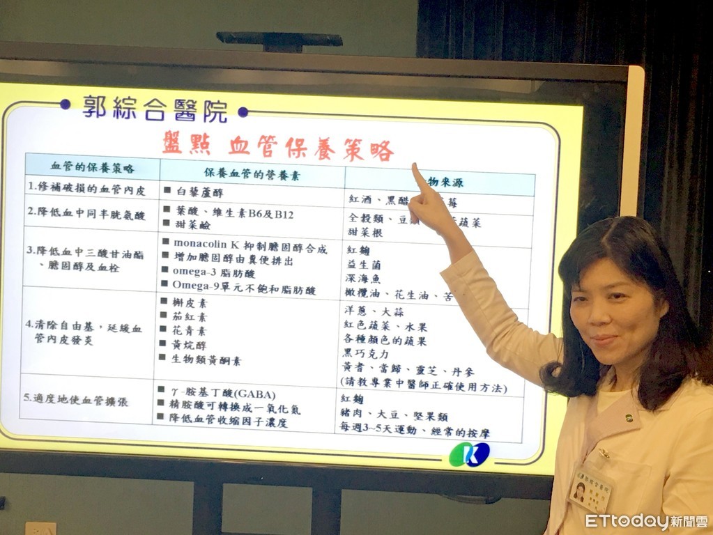 ▲台南市郭綜合醫院營養室郭家伶組長,建議能維持血管「軟Q」的食物,民眾可善加食用。(圖/記者林悅攝)