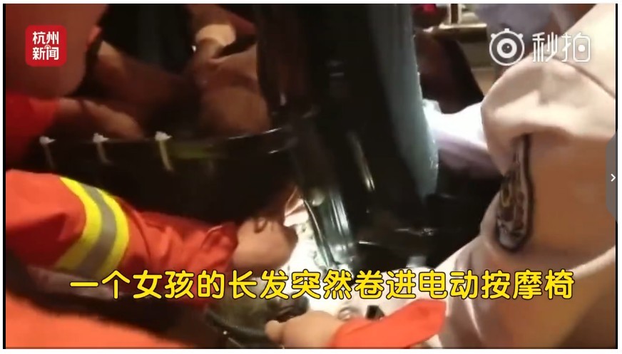 許多賣場近來紛紛提供電動按摩椅服務,方便等候民眾打發時間,又能紓解疲勞,然而大陸浙江一名長髮女子使用杭州火車站地下街的按摩椅服務時,卻發生「按摩椅吃人」意外,整頭長髮不慎被椅子捲入,最後出動消防人員幫忙才終於脫困。