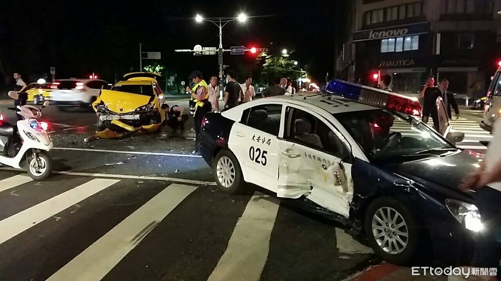 據目擊者表示,計程車行駛在中線車道,是綠燈直行,不過開的滿快的,看到正在左轉的警車時,可能已經反應不及,車頭直接撞向警車右側車門,造成計程車車頭毀損,警車的右側車門也凹了一個大洞。警方表示,詳細肇事原因,一切等轄區交通隊調閱相關監視器畫面後才能釐清。