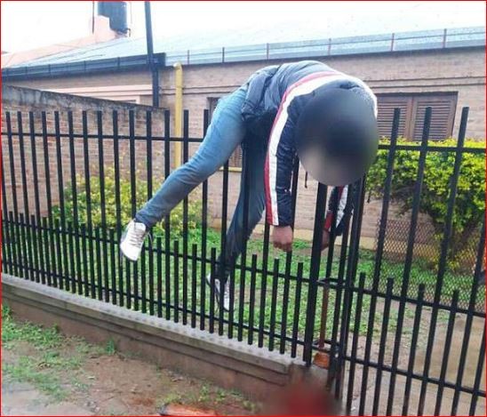 ▲費南德茲跨過屋外欄杆時,誤觸手槍板機把反自己射殺,屍體就「掛」在欄杆上。(圖/翻攝自網路)