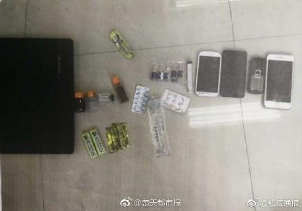▲警方查獲楊男犯案用的迷姦藥和手機。(圖/翻攝《楚天都市報》)