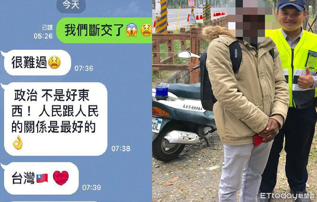 這名布吉納法索男子今年初到屏東面試,因問路而認識金政達,兩人事後也成為好友,甚至拍照留念。昨天布國突然宣布與我國斷交,消息露出後,金政達傳訊息給對方,「我們斷交了!」附上驚訝和傷心的表情符號,而布國男也回傳哭臉寫下「很難過」、「政治不是好東西!人民跟人民的關係是最好的」,最後再寫上台灣,也附上中華民國國旗及愛心。