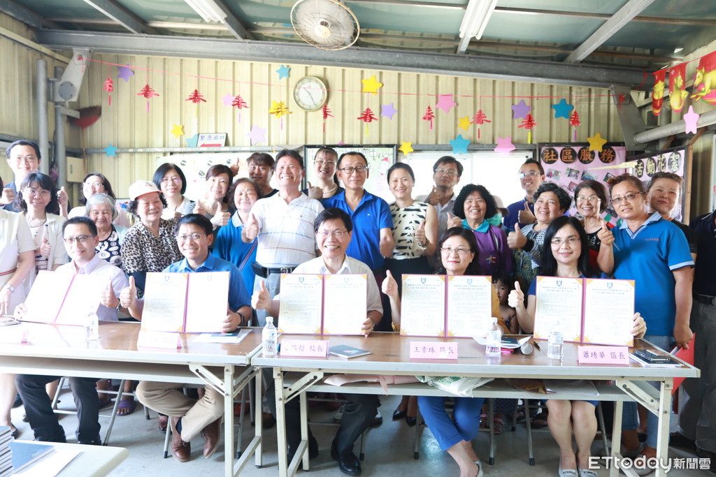▲中華醫大與南關線4區區長,共同簽訂大學社會責任實踐計畫結盟合作意願書,要讓南關線亮起來。(圖/華醫大提供)