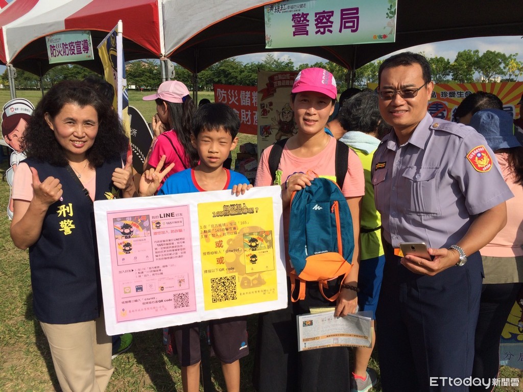 ▲台南市警歸仁分局,在「2018年台南市歸仁區黃綠紅幸福防災健走」活動,進行反毒安居專駐點宣導。(圖/警方提供)