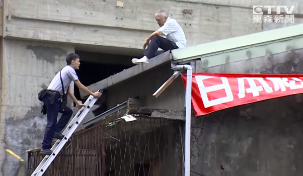 據悉,老翁的7坪土地被劃入都更範圍,建商開出2戶住家作為交換,但老翁堅持要一樓店面。建商眼見談判破裂,乾脆放棄7坪土地,直接從已徵收來的130坪開始動工,豈料老翁不僅拉起「迫害台灣人」布條控訴建商,還以施工影響生活為由求償千萬。最終,建商拒絕賠償,老翁竟直接爬上自家屋頂要脅輕生,嚇得家屬報案求助。