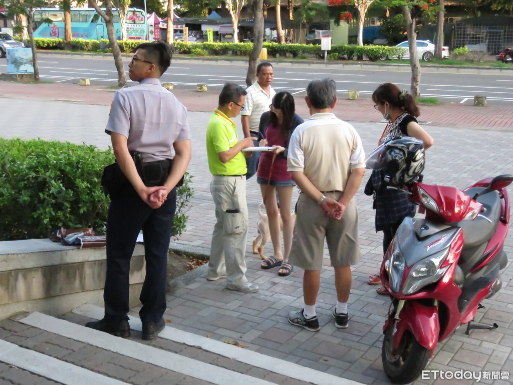 ▲台南市處動物保護檢查員,於公園稽查毛小孩寵物登記及狂犬病疫苗注射情形。(圖/動保處提供)