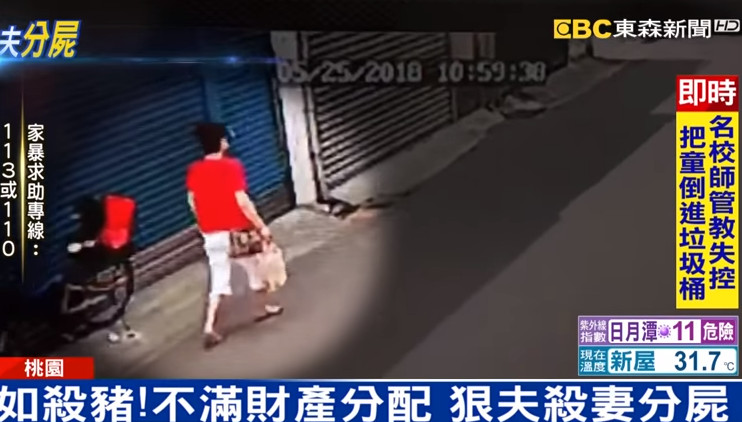 桃園市一名68歲簡姓婦人,4天前和陳姓丈夫談好離婚,25日卻遭到對方持鐵鎚、刀械將對方殺害後分屍,甚至分裝成「2箱3袋」。警方指出,事發當天一早,她受男方要求,提著早餐送到嫌犯龍安街住處,被監視器捕捉到,沒想到成為最後身影。