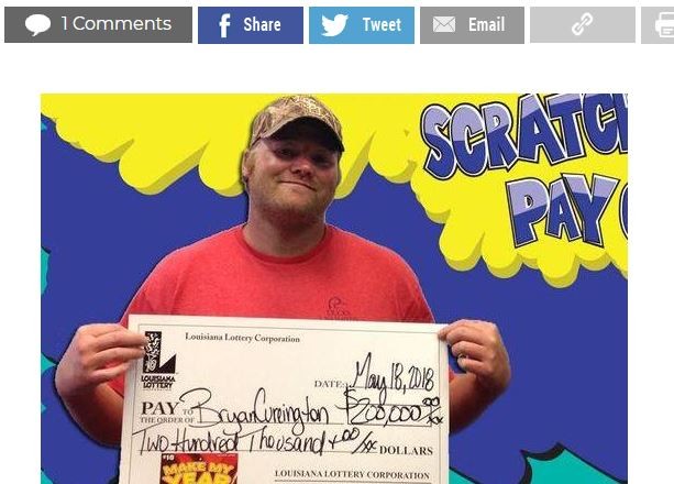 綜合外媒報導,柯林頓(Bryan Cureington)向路易斯安那州的樂透相關單位人員表示,自己買的是「Make My Year」樂透彩券,一開始只是想試試手氣,結果竟然真的只花10美元就中了20萬美元的大獎,開心得差點說不出話來。
