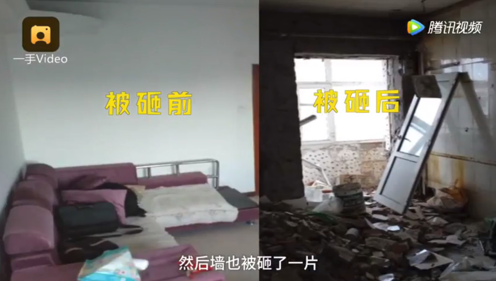 ▲張男得知自己的房子無故遭砸成「廢墟」,直接傻眼。(圖/翻攝梨視頻)