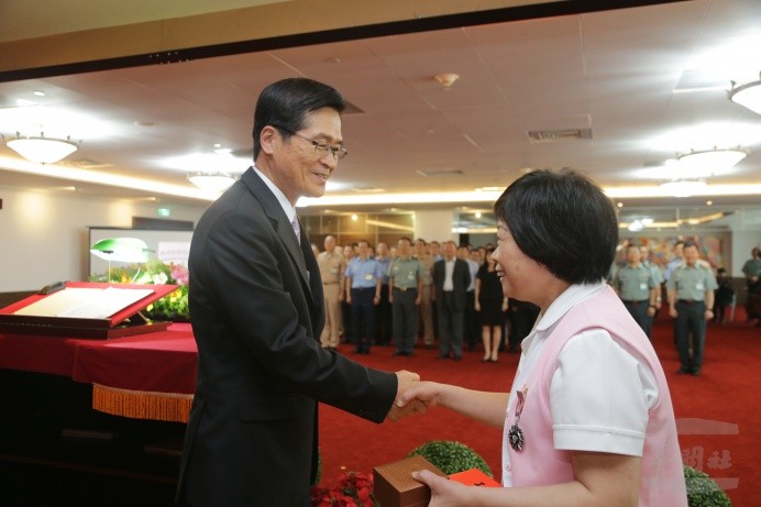 國防部長嚴德發28日主持醫護組張楊素美護理員榮退典禮,頒發獎章表彰她畢生在軍護職涯上的付出與奉獻,並代表全體國防部同仁向張楊女士,致上最高敬意與謝忱。