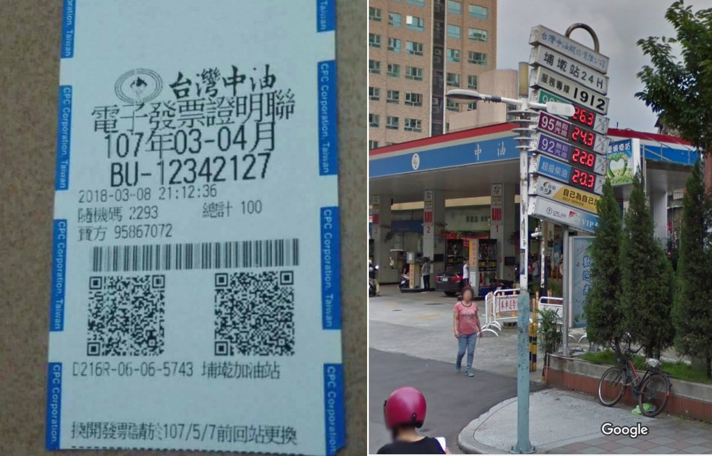 「衰主」網友在臉書爆廢公社分享2張照片,畫面中只見發票上寫著「台灣中油」,地點在新北市板橋中油埔墘加油站,時間為3月8日晚上9點12分,消費金額一共是100元,發票兌獎號碼則是大大寫著「12342127」,既陌生又熟悉的一串數字。