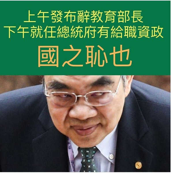 教育部長吳茂昆昨請辭獲准,網路卻瘋傳吳茂昆「上午發布辭教育部長,下午就任總統府有給職資政,國之恥也」,對此,總統府30日表示,根本沒有聘任吳茂昆任總統府資政,且資政早就是無給職了。