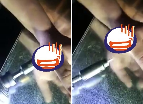 影片中,眼鏡男右手拿著電動起子,左手平放在桌上,拇指下方的肌膚明顯有一塊瘀血,甚至腫了起來,接著他將工具對準插進肉裡的螺絲,先嘗試轉起一半,鬆開之後又繼續轉,直到整根螺絲釘被拔起,在手上留下一個小卻深的血洞,好不容易解脫,他也忍不住在影片最後痛得大叫。