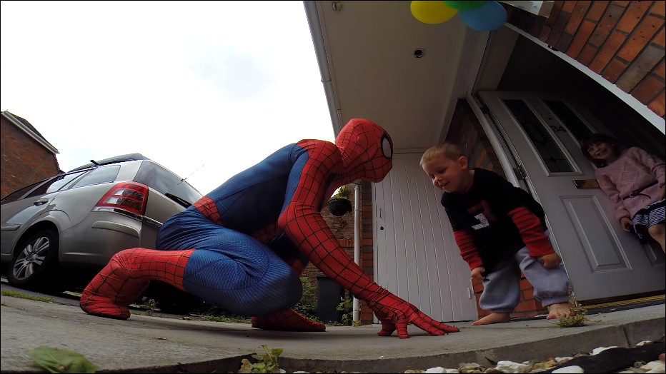 英國一名30歲父親威爾遜(Mike Wilson)知道罹患腦癌的5歲兒子傑登(Jayden)非常喜歡蜘蛛人,於是他在兒子生日那天,打扮成蜘蛛人的帥氣模樣,從屋頂上跳躍下來,就是要給傑登一個大驚喜,證明這個世界上確實有英雄存在,而他也會努力陪伴兒子戰勝病魔,一起度過難關。