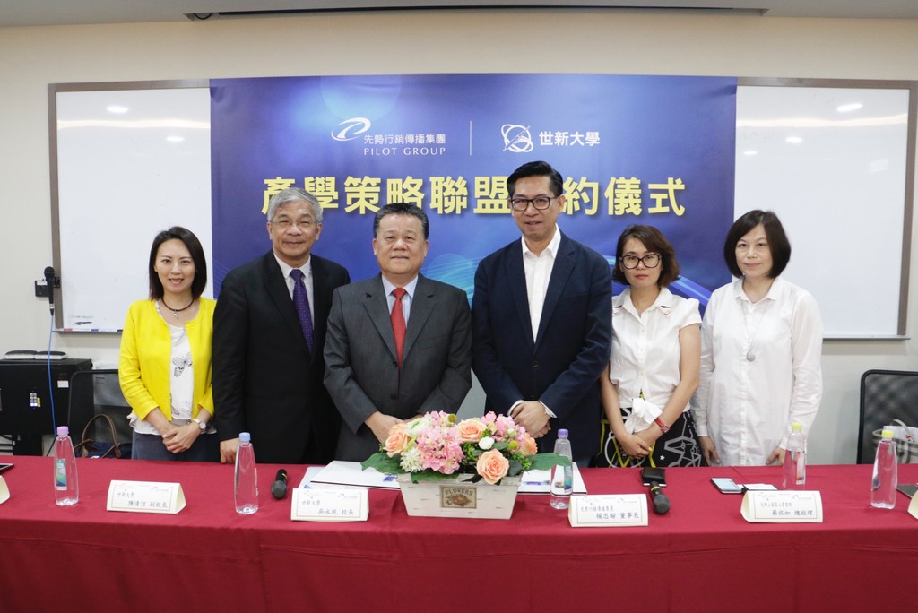 ▲先勢行銷傳播集團與世新大學舉行「產學策略聯盟」簽約儀式。由左至右為:世新大學許碧芳產學合作長、陳清河副校長、吳永乾校長、先勢行銷傳播集團楊忠翰董事長、先勢公關第二事業群蔡依如總經理、世新大學陳淑滿學生事務長。(圖/先勢行銷傳播集團提供)