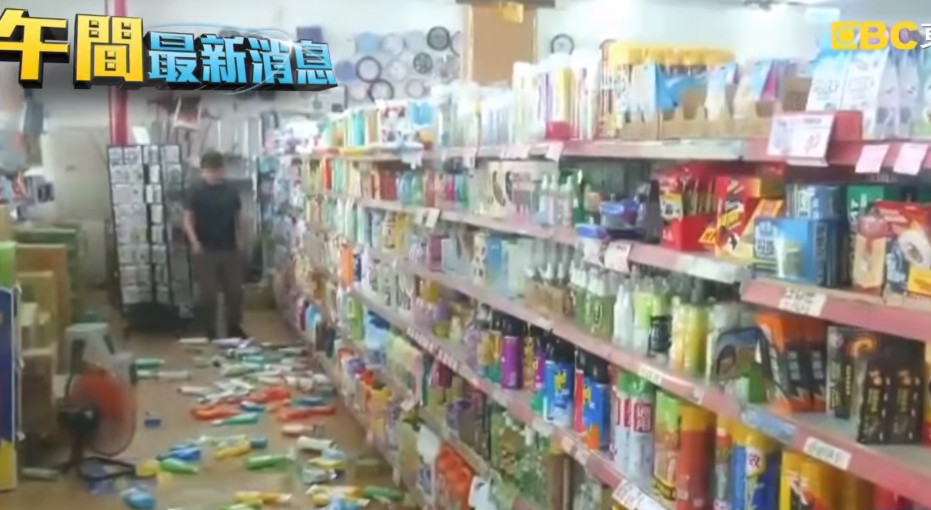 ▲商店內的商品因為劇烈搖晃島落在地。(圖/東森新聞,下同)