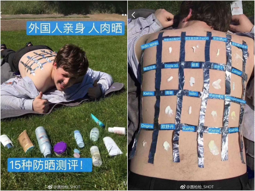 專家實測防曬用儀器,但一般人通常不會去取得那些專業的工具,就只好親自上陣;最近有人在《美妝公社》分享,國外網友實測防曬的效用,就是親自下去曬,甚至把整個後背貼上像烤肉網般的格子,讓他一次可以評測15種防曬乳,超狂!