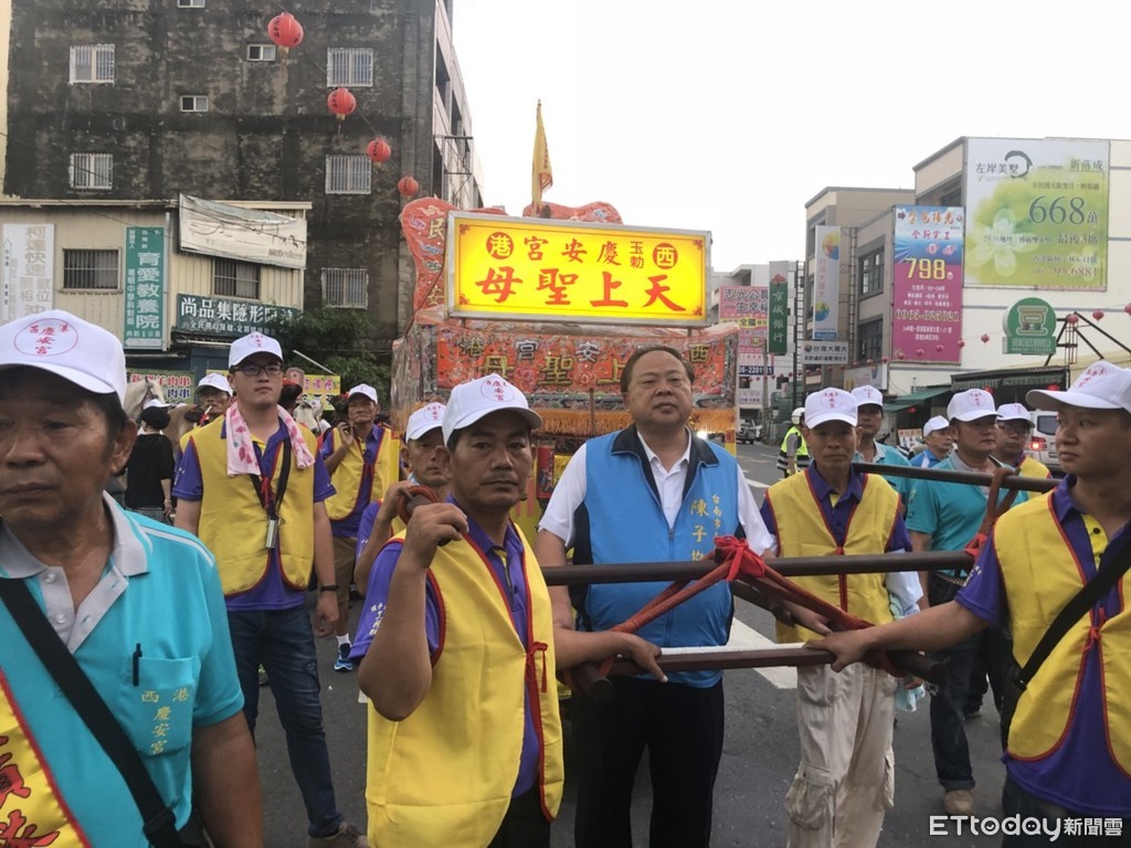 ▲3年一科的「台灣第一香–西港香」,於31日上午正式登場,台南市長參選人陳子敬受邀到西港區慶安宮,參與起轎儀式。(圖/陳子敬提供)