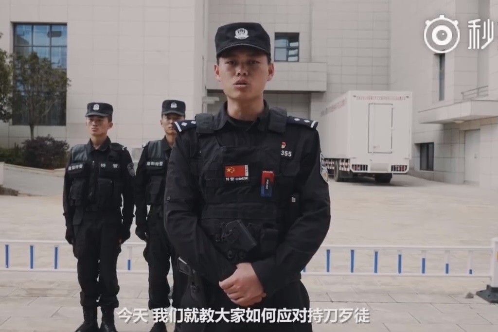 這隻宣傳片是由雲南省保山市隆陽公安分局製作,一開始一名警察一本正經地說,「今天我們就教大家如何應對持刀歹徒」,接下來一名同仁拿著美工刀,扮演歹徒,大家都很好奇警察會教民眾什麼防身秘招,沒想到下一秒,原先正經的警察用跑百米的速度狂奔,還一邊高八度尖叫大喊「救命啊,警察叔叔」,大轉折讓網友好傻眼。