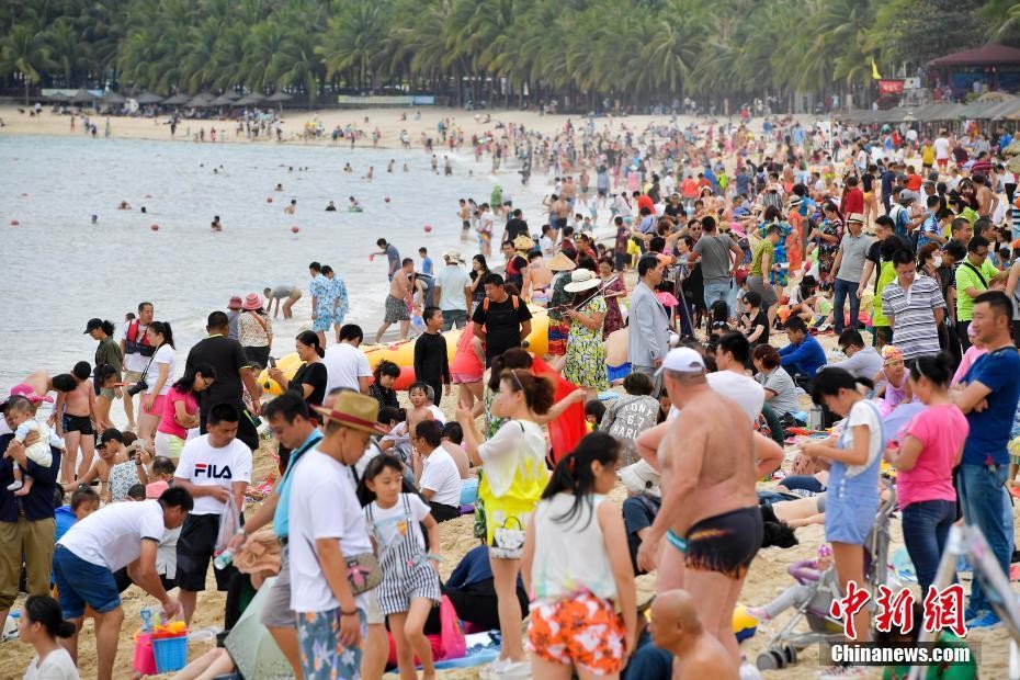 ▲遊客擠滿三亞大東海沙灘。(圖/翻攝自中新網,下同)