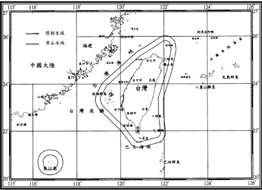 此次國防部公告是修正「台灣、澎湖及東沙」地區限制、禁止水域範圍及事項。在限制水域範圍包括,台灣、澎湖、綠島、蘭嶼、彭佳嶼、小琉球、七星岩、東沙周邊自領海基線起24浬海域,而管制單位則執行近海巡防、緝私、偷渡及海上治安維護之各主管機關。