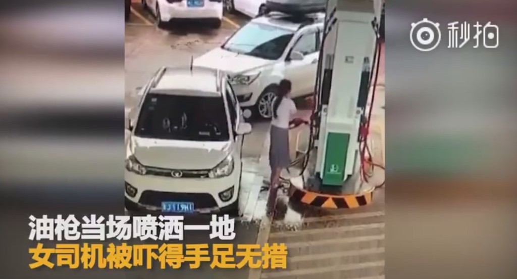不少駕駛人為了省油錢會選擇自助加油,近日微博流傳一段監視器畫面,一名女駕駛自助加油時,疑似油槍操作不慎,汽油當場噴灑一地,驚悚畫面讓她當場嚇得手足無措,後方排隊車輛也嚇得趕緊掉頭轉向。
