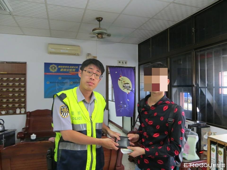 鐵路警察局高雄分局台南分駐所警員蔡耕欣,於6月2日中午服備勤勤務時,於月台發現一只遺落之皮夾,立即透過皮夾內資訊嘗試聯繫,並請附近站區加強廣播及留意有無民眾詢問,而後於12時10分許聯繫上失主阮先生,蔡員確認無誤後即時發還,阮民十分感謝警方熱心協助。