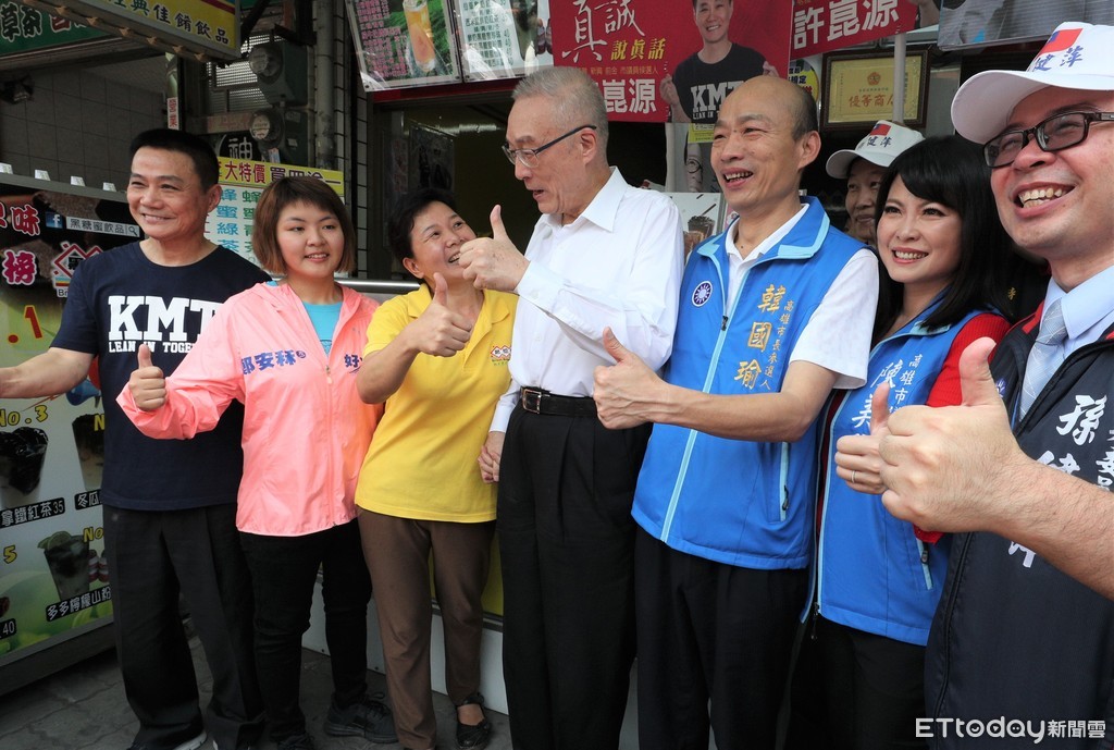 ▲曾任高雄市長的國民黨主席吳敦義(右)今天南下高雄,陪韓國瑜造勢。(圖/記者宋德威攝)