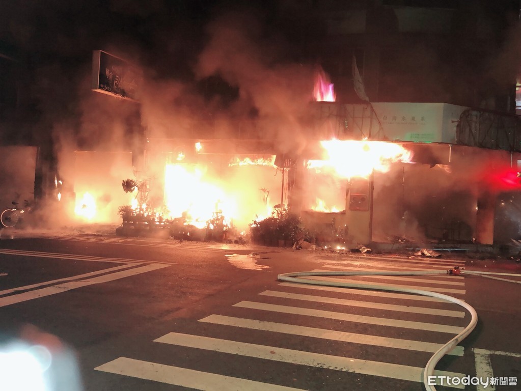 ▲台南市東區勝利路連棟店舖1樓,5日凌晨發生大火,消防人員救出16人,其中9人受嗆傷送醫。(圖/記者林悅翻攝)
