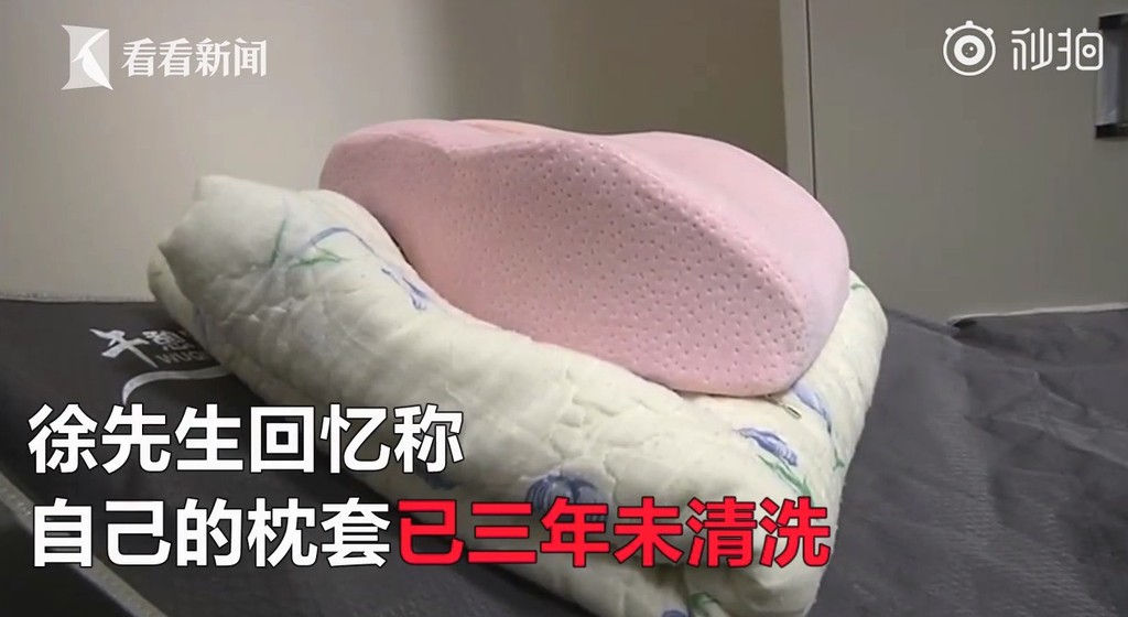 ▼男子枕頭套3年沒洗。(圖/翻攝自看看新聞秒拍)