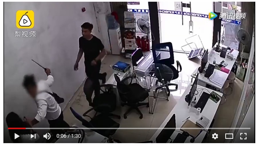 影片中可看到,男子手上拿著棍棒,不但要脅馬女同事,看到她就是一陣暴打,馬小姐說,當時男子要求和她聊一下,她不同意就被打,而且這不是對方第一次動粗,之前的暴力行為曾讓她耳膜穿孔,傷還沒完全好,又加上這次的腦震盪和部分軟組織挫傷。這名男子目前已被警方逮捕,被行政拘留10天並罰款人民幣500元(約台幣2326元)。