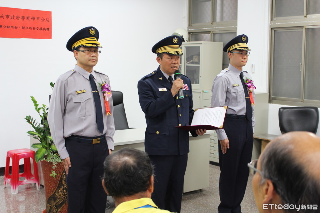 ▲台南市警學甲分局將軍分駐所卸、新任所長布達交接典禮,由分局長陳錦文親臨主持。(圖/警方提供)
