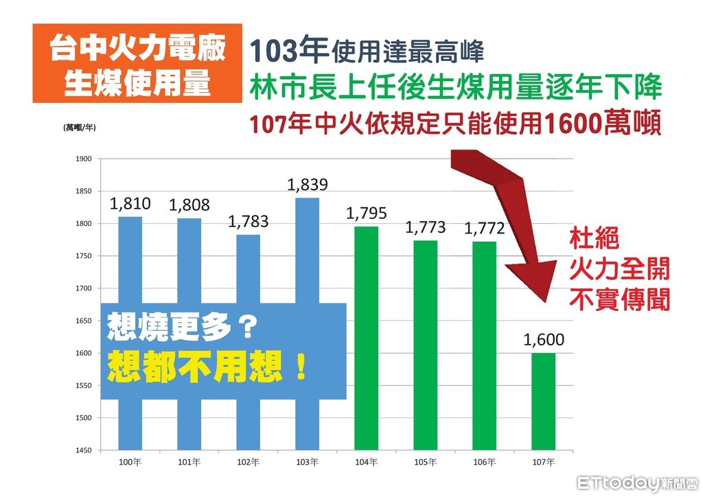 ▲環保局說明,中火在設備改善工程後,生煤使用量將降至1600萬噸,不可能再恢復原本用量。(圖/台中市政府提供)