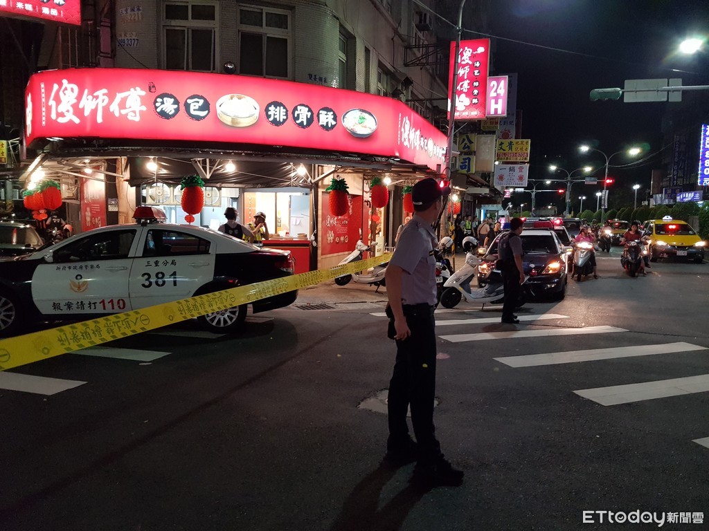 ▼新北三重爆警匪槍戰,員警拉起封鎖線。(圖/記者陳豐德攝,下同)