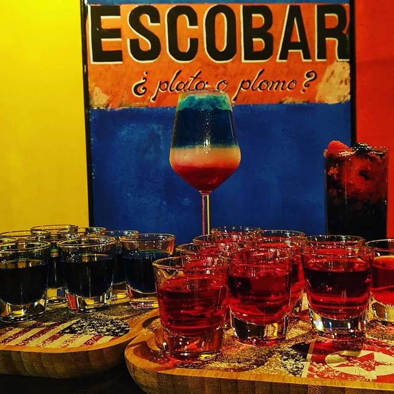 據報導,另一家以提供調酒揚名的酒吧「艾斯科巴」(Escobar)則為此創造了兩款調酒,一款是藍白紅三色的「川普」(Trump),以美國波本威士忌為基底,一款是紅色色調的「金」(Kim)以朝鮮燒酒為基底,而售價上也同樣紀念川金會舉辦日期,被定為每杯12.6新幣(約新台幣280元)。