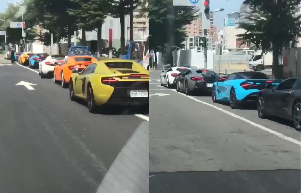 網友黃品勳在臉書私密社團《爆廢公社》PO出一段影片,地點在高雄市博愛四路,只見路旁有10輛的麥拉倫超跑併排停車,其中包含要價1188萬的570S Spider、售價988萬起的540C等車款,10輛整齊排放在路邊、總價破億元。黃品勳透露:「其實大概還有6輛車還沒拍到,因為附近有經銷商,推測應該是要去大鵬灣車聚。」
