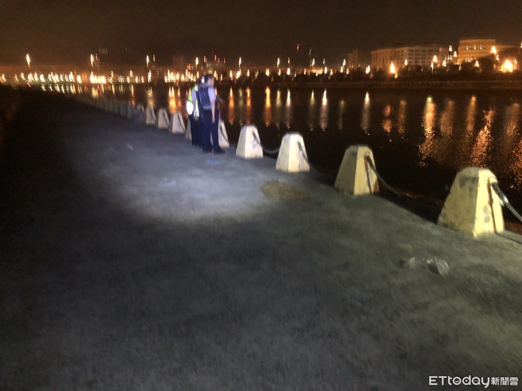 ▲女子在堤岸邊留下遺物,隨即縱身跳入河中。(圖/記者趙永博攝)