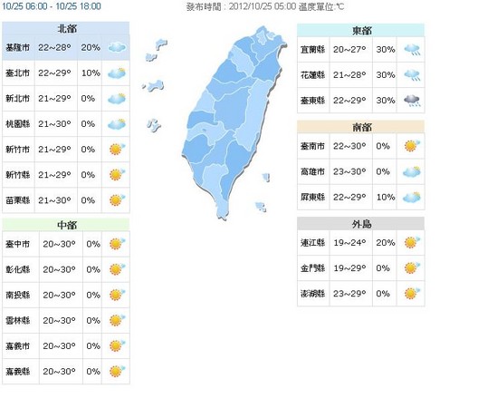 ▼中央氣象局表示,25日台灣各地及澎湖、金門、馬祖大多為多雲到晴的天氣。(圖/中央氣象局網站)